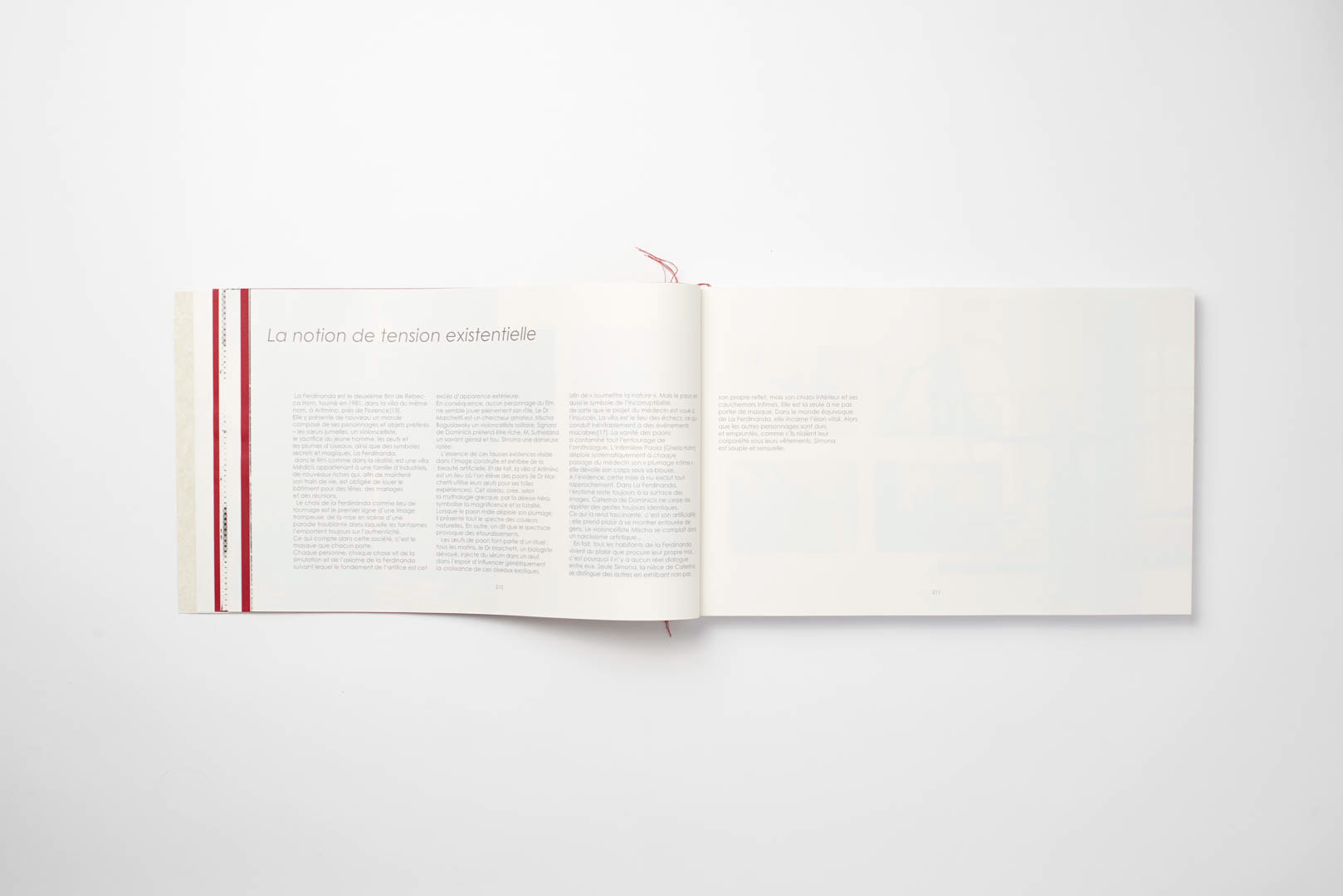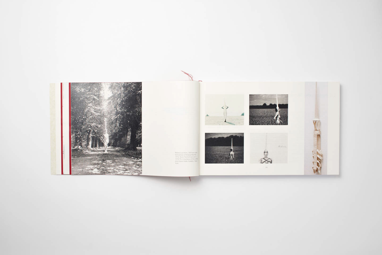 Les éditions Xavier Barral ont décidé de produire de beaux livres sur des artistes contemporains. La maison d’édition Xavier Barral conçoit chaque ouvrage comme un objet singulier devant néanmoins s’inscrire dans une chaine de production industrielle, donnant le sentiment au grand public d’accéder non seulement à un beau livre, mais aussi à un livre rare. Pour ce projet, il m’était demandé de concevoir de ligne graphique du beau livre sur Rebecca Horn en travaillant principalement sur la couverture,les entrées et sorties du livre, et des principes de mise en page.