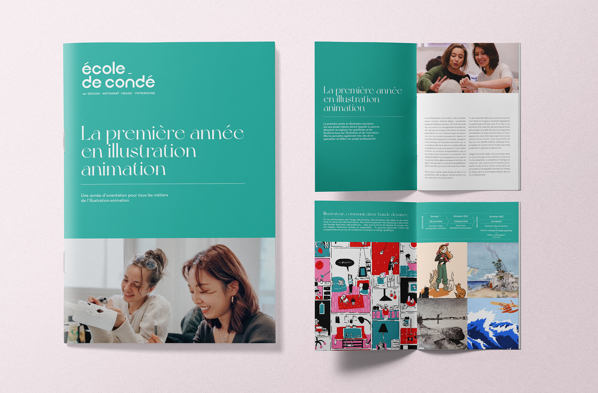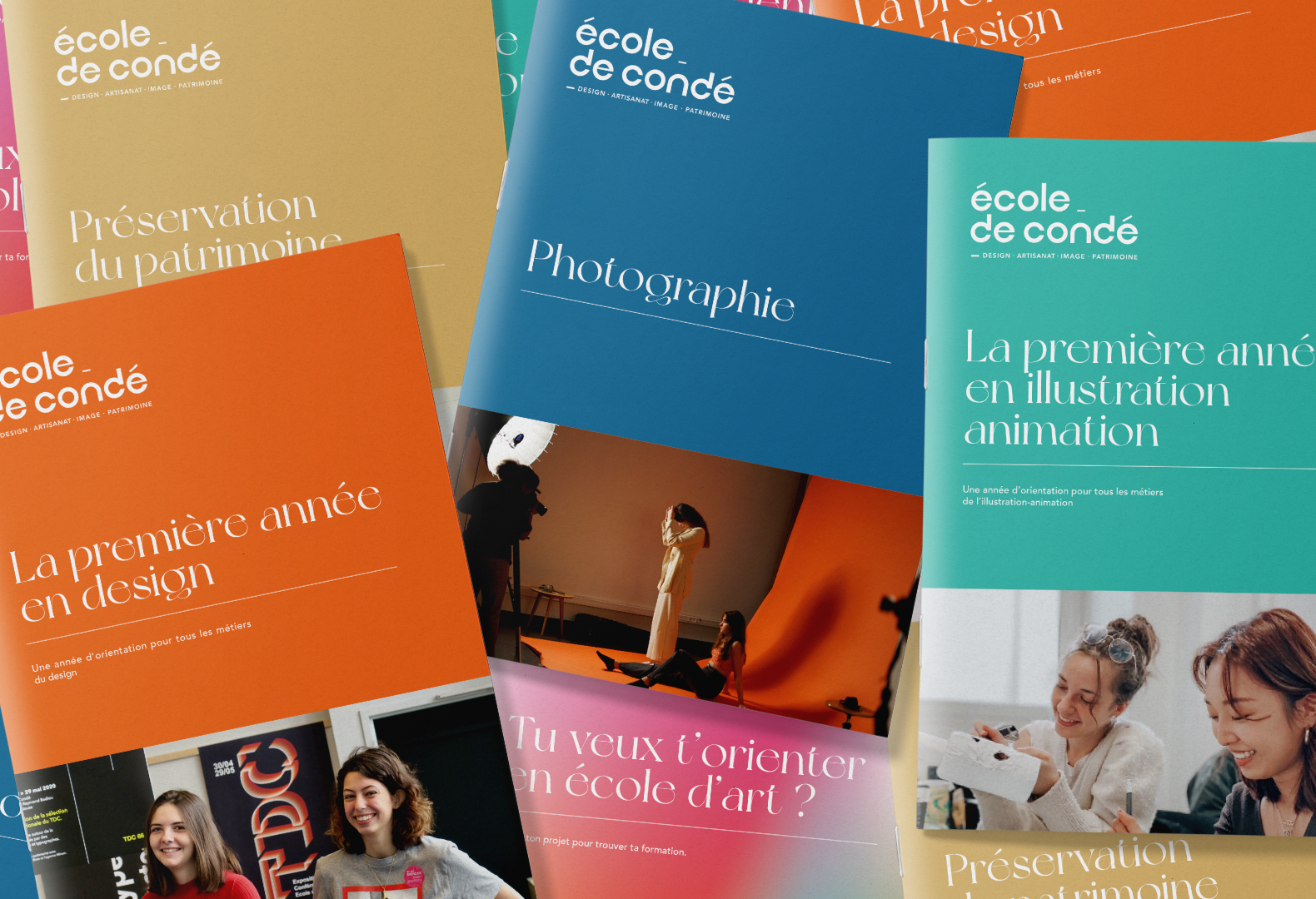 Réalisation de plaquettes permettant d'expliquer les différents pôles de l'école de condé.